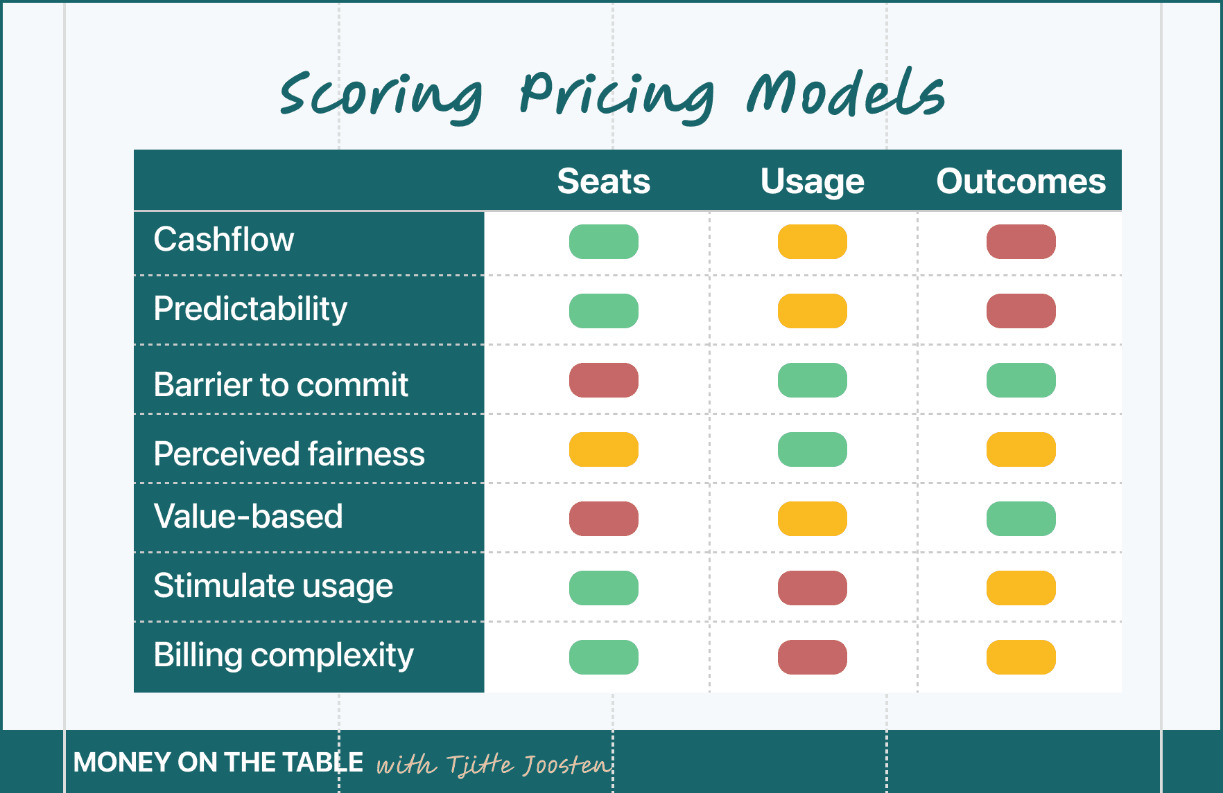 As you can see, seat-based is great for you as a vendor. However, it's clearly not the best option for buyers or users. Usage- and outcome-based might improve your earning potential and ease the sales process, but they generally increase your own risks.